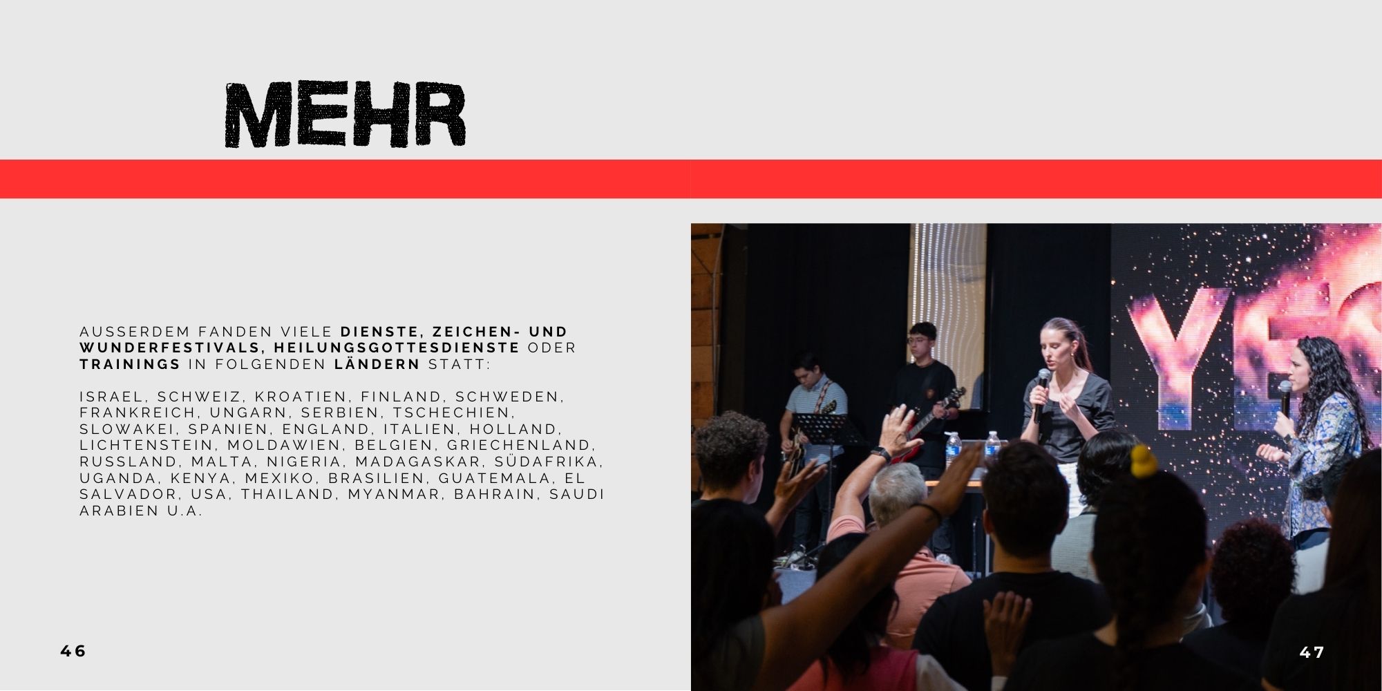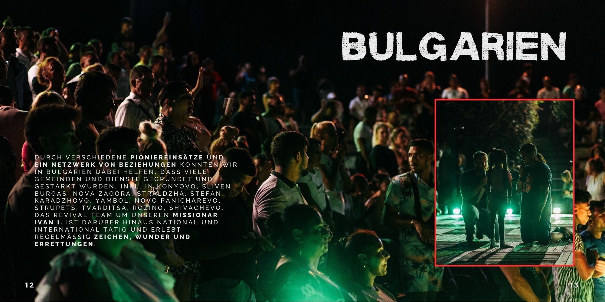 Wir denken Weltevangelisation und Mission ist unser Herzschlag. Unser Bestreben ist es, Menschen in unserem Umfeld, in den deutschsprachigen Ländern und darüber hinaus mit der Liebe Jesu zu erreichen. Wir sehen es aber ebenso als unsere Aufgabe, das Evangelium direkt bis an die Enden der Erde zu tragen, indem wir vom Revival Center aus Teams für Großevangelisationen, Missionseinsätze und Gemeindegründungen unter unerreichten Volksgruppen aussenden, was wir seit vielen Jahren tun.
